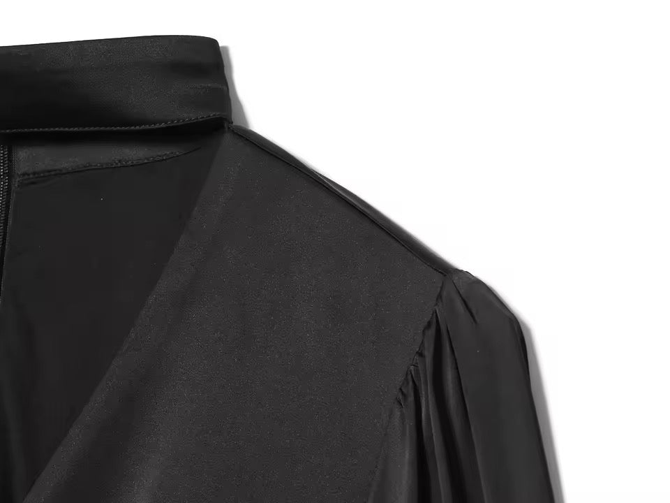 Der figurbetonte Schnitt unterstreicht die Silhouette, während die langen Ärmel und der elegante Neckholder-Look für einen edlen, professionellen Auftritt sorgen. Ob im Büro, bei Meetings oder in der Freizeit – diese Bluse lässt sich vielseitig kombinieren und passt perfekt zu Hosen, Röcken oder Blazern.