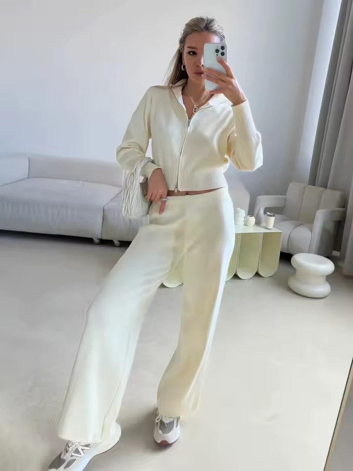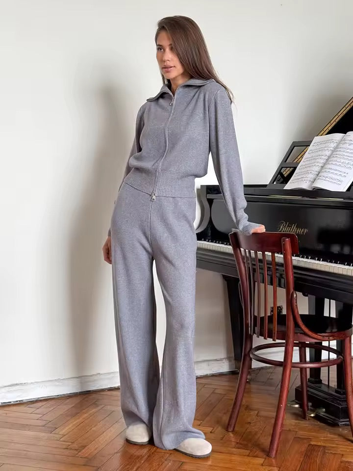 Set: 2-teilig – Pullover mit Reißverschluss + weite Hose