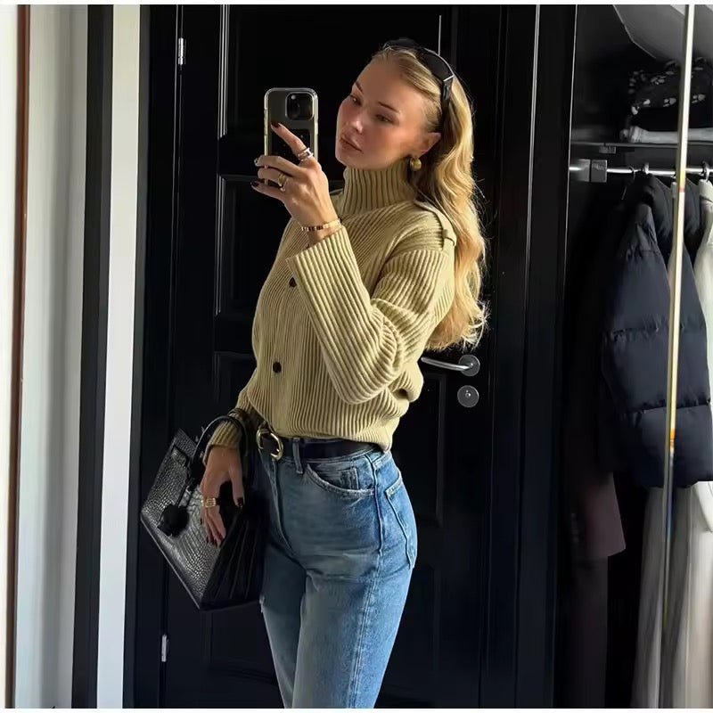 Diese modische Damen Strickjacke ist die perfekte Kombination aus Eleganz und Komfort für den Herbst 2026. Das einfarbige Design wirkt zeitlos und stilvoll, während der Stehkragen der Jacke eine moderne, edle Note verleiht.