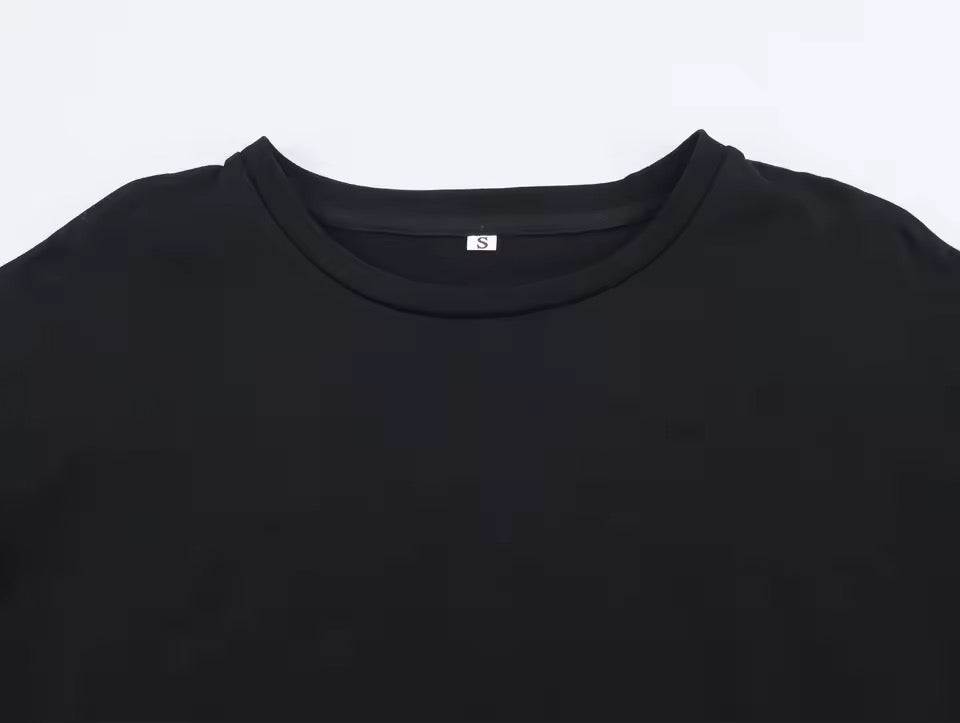 Das Damen T-Shirt verbindet High-Street-Fashion mit femininer Eleganz und lässigem Komfort. Das unregelmäßige lange Design sorgt für eine moderne, fließende Silhouette, die jeder Figur schmeichelt. Der klassische O-Ausschnitt und die kurzen Ärmel machen das Shirt zu einem vielseitigen Essential für jede Saison.