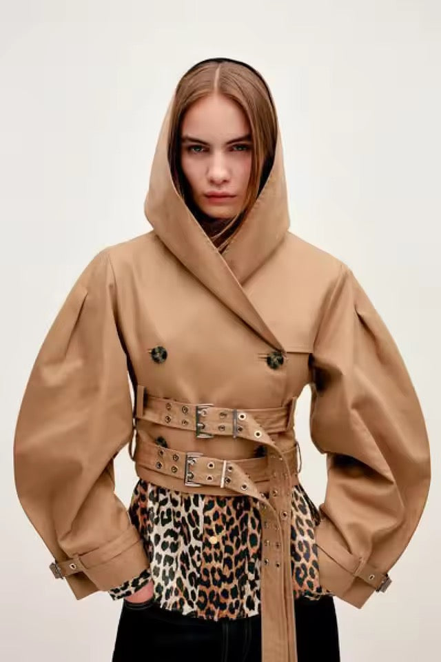 Bringen Sie mit diesem Punk-inspirierten Trenchcoat frischen Wind in Ihre Herbstgarderobe! Der lange Trenchcoat kombiniert moderne Elemente mit einem Hauch von Rebellions-Charme. Mit Fledermausärmeln für einen dramatischen Effekt und einem zweireihigen Knopfverschluss sorgt dieser Mantel für einen starken, aber eleganten Look. Der Slim Fit Schnitt betont Ihre Figur, während der Kapuze und der Gürtel-Details dem Design eine praktische und stylische Note verleihen. Der Crop-Stil des Mantels bietet eine coole, modische Silhouette und lässt sich perfekt zu High-Waist-Hosen oder Röcken kombinieren. Dieser Herbstmantel ist ideal für Frauen, die sowohl Komfort als auch edgy Stil suchen. Egal, ob für den Alltag oder als Statement-Piece für besondere Anlässe – dieser Mantel setzt garantiert ein Fashion-Statement.